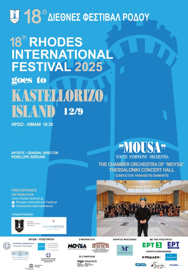 Η ορχήστρα δωματίου της “MOYSA”, υπό τη διεύθυνση του αρχιμουσικού της Παναγιώτη Διαμαντή, εμφανίζεται για πρώτη φορά στο Διεθνές Φεστιβάλ Ρόδου, με μία μοναδική συναυλία, στο Παλάτι του Μεγάλου Μαγίστρου των Ιπποτών της Ρόδου. Η συναυλία θα επαναληφθεί την επόμενη ακριβώς μέρα, στο ιστορικό νησί Καστελλόριζο.