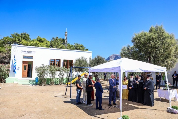 Ο Πρόεδρος της Δημοκρατίας Κωνσταντίνος Αν. Τασούλας παρευρέθηκε στην τελετή του αγιασμού για την έναρξη της σχολικής χρονιάς στο Δημοτικό Σχολείο Τελένδου, στο οποίο φοιτά ένας μαθητής: ο 10χρονος Σάββας, που φέτος θα πάει στην Ε’ τάξη. Μαζί του είχε την δασκάλα του Δέσποινα Μιχαήλ, η οποία θα υπηρετήσει για δεύτερη χρονιά στο ακριτικό νησί. Απευθυνόμενος στον μαθητή αλλά και στη δασκάλα του ο κύριος Τασούλας είπε τα εξής: