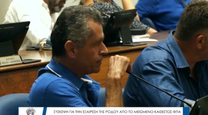 Η Ρόδος μένει εκτός του καθεστώτος μειωμένου ΦΠΑ με το σκεπτικό ότι "οι Ροδίτες έχουν λεφτά" — ένας ισχυρισμός που συνιστά εθνική προσβολή. Τονίστηκε ότι αυτός ο αυθαίρετος ισχυρισμός αποτελεί κατάφωρη προσβολή και ασέβεια προς τη συντριπτική πλειοψηφία των κατοίκων του νησιού, που είναι μισθωτοί και απασχολούνται κυρίως σε εποχικά επαγγέλματα.