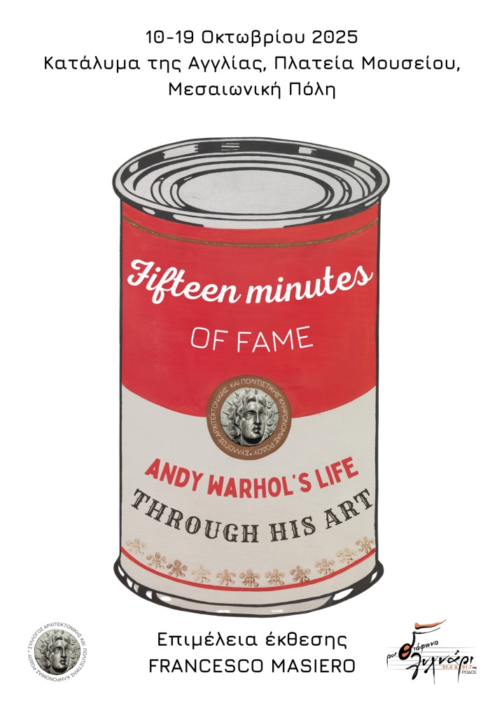 Ο Σύλλογος Αρχιτεκτονικής και Πολιτιστικής Κληρονομιάς Ρόδου, σε συνεργασία με τον συλλέκτη Francesco Masiero, παρουσιάζουν μια μοναδική έκθεση αφιερωμένη στον Andy Warhol, έναν από τους πιο εμβληματικούς καλλιτέχνες του 20ού αιώνα.