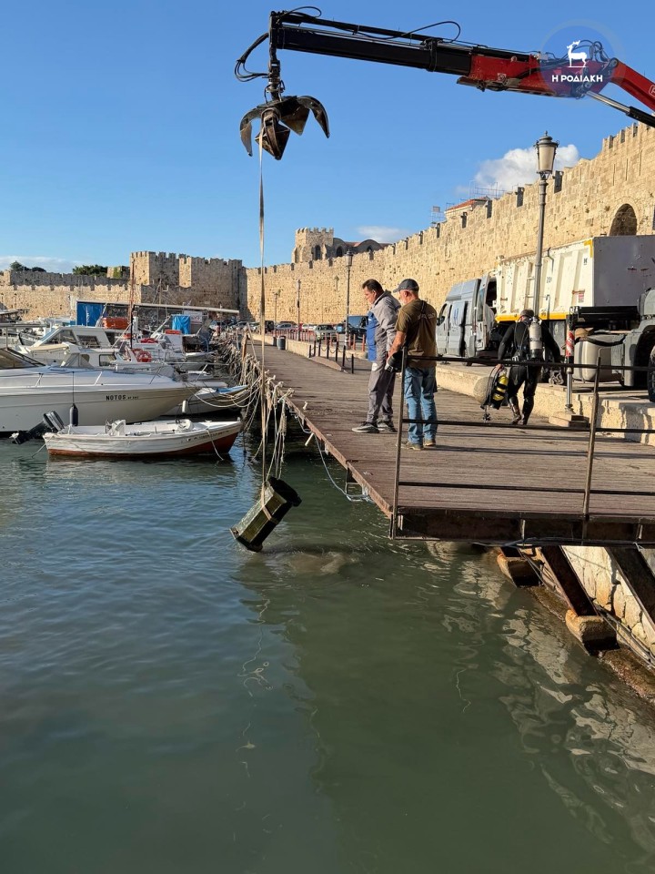 Εννιά πέτρινες μπάλες (σήμα κατατεθέν της Μεσαιωνικής Πόλεως Ρόδου) και έναν μαντεμένιο κάδο, «αλίευσαν» σήμερα το πρωί της Πέμπτης από τον βυθό της θάλασσας, απέναντι σχεδόν από την Πλατεία Σύμης, τα συνεργεία του δήμου Καθαριότητας του δήμου Ρόδου και το Δημοτικό Λιμενικό Ταμείο Νοτίου Δωδεκανήσου.