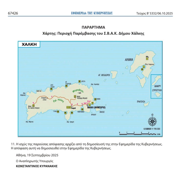 Ο δήμος Χάλκης ανακοινώνει με ιδιαίτερη χαρά και υπερηφάνεια ότι εκδόθηκε και δημοσιεύθηκε στην Εφημερίδα της Κυβερνήσεως (ΦΕΚ Β' 5332/2025) η απόφαση του υπουργείου Υποδομών και Μεταφορών με την οποία χαρακτηρίζεται επίσημα ως Σχέδιο Βιώσιμης Αστικής Κινητικότητας (ΣΒΑΚ) το ολοκληρωμένο σχέδιο του δήμου Χάλκης.