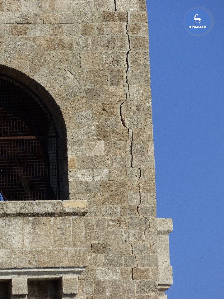 Σοβαρές ρωγμές παρουσιάζονται σε αρκετά σημεία του καμπαναριού του Ιερού Ναού του Ευαγγελισμού της Θεοτόκου στη Ρόδο, με πολλούς διερχόμενους πολίτες να ανησυχούν για την ασφάλεια του ιστορικού μνημείου.