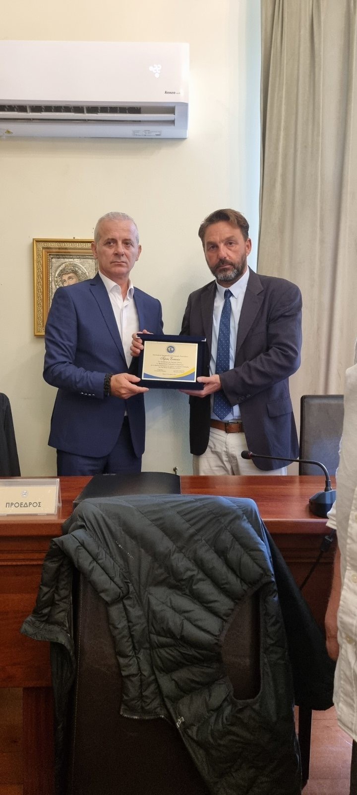 Ο δήμαρχος Χάλκης, κ. Ευάγγελος Φραγκάκης, ευχαρίστησε θερμά την ΠΟΑΣΥ για την τιμή, τονίζοντας: