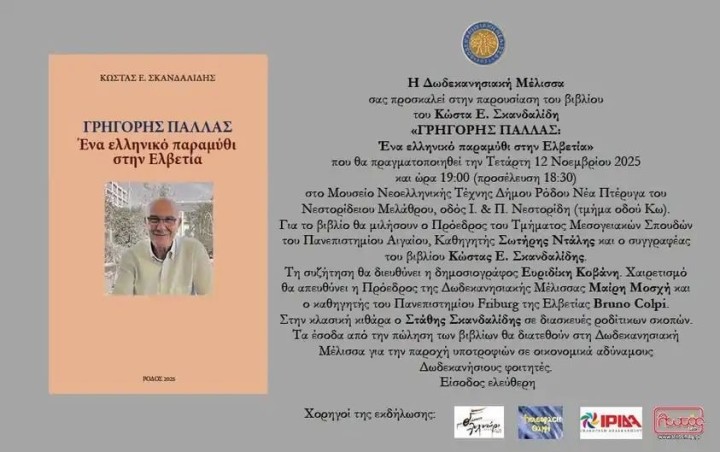 Σε μια εκδήλωση βαθιάς συγκίνησης και ουσιαστικού περιεχομένου, το Εσπερινό Γενικό Λύκειο Ρόδου τίμησε έναν ξεχωριστό άνθρωπο της Δωδεκανησιακής κοινωνίας: τον Γρηγόρη Πάλλα. Η παρουσίαση της βιογραφίας «Γρηγόρης Πάλλας: Ένα ελληνικό παραμύθι στην Ελβετία» από τον συγγραφέα Κώστα Σκανδαλίδη αποτέλεσε αφορμή για μια βραδιά όπου η καλλιέργεια, η σεμνότητα και η προσφορά συνυφάνθηκαν με τον σεβασμό προς έναν συντοπίτη που διακρίθηκε στο εξωτερικό, χωρίς ποτέ να αποκοπεί από τη ρίζα του. Μέσα από λόγο, μουσική και ζεστή ανθρώπινη παρουσία, αναδείχθηκε η πορεία ενός Λίνδιου επιστήμονα που επιστρέφει στο νησί του όχι ως επιστέγασμα προσωπικής επιτυχίας, αλλά ως πράξη ανταπόδοσης.