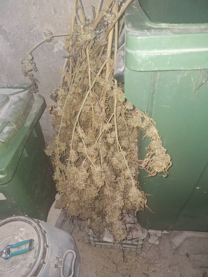 • Κλώνοι και αποσπάσματα ακατέργαστης κάνναβης σε φάση αποξήρανσης συνολικού βάρους -2.145- γραμμαρίων.