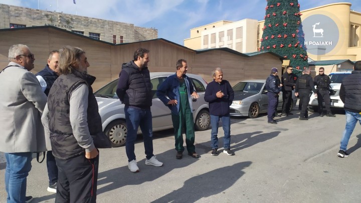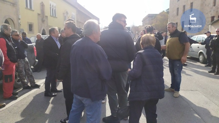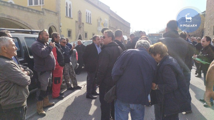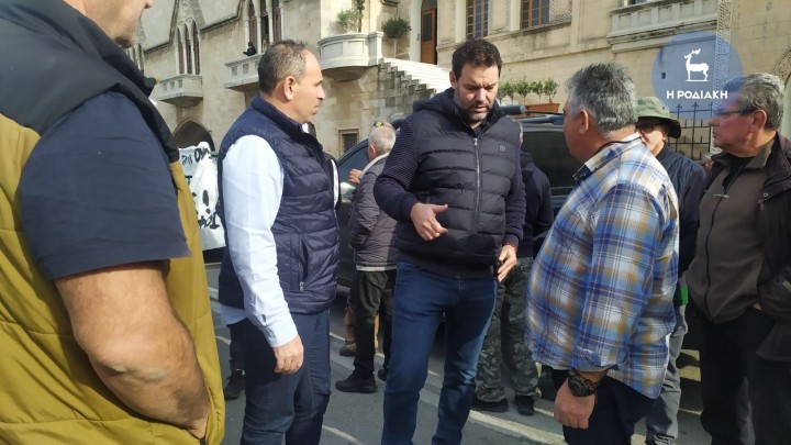 Με τους αγρότες, οι οποίοι έφτασαν πριν από λίγο στην Πλατεία Δημαρχείου με τα αγροτικά αυτοκίνητά τους, συναντήθηκαν ο αναπληρωτής περιφερειάρχη, Απόστολος Ασπράκης, ο αντιπεριφερειάρχης Φιλήμονας Ζαννετίδης και ο δήμαρχος Ρόδου, Αλέξανδρος Κολιάδης, ο οποίος κάλεσε στη αίθουσα εθιμοτυπίας του Δημαρχείου τούς αγρότες, ώστε από κοινού να καταγράψουν τα προβλήματα που αντιμετωπίζουν και να τα προωθήσουν στο αρμόδιο υπουργείο.