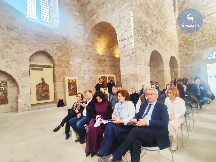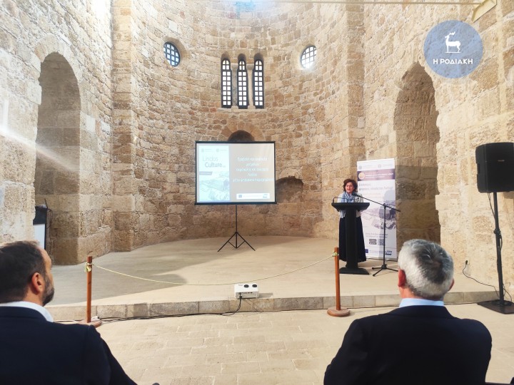 Στη συνέχεια, ευχαρίστησε την υπουργό Πολιτισμού, Λίνα Μενδώνη, λέγοντας ότι τα τελευταία χρόνια εκτελείται ένα τεράστιο έργο στο νησί μέσω των χρηματοδοτήσεων του ΕΣΠΑ και του Ταμείου Ανάκαμψης, που είναι «το μεγαλύτερο αναστηλωτικό έργο προστασίας και ανάδειξης που έχει υλοποιηθεί στη Ρόδο και τα άλλα νησιά». Έκανε, επίσης, γνωστό ότι, με αφορμή την ολοκλήρωση των έργων μέχρι τα τέλη του έτους και αρχές του χρόνου, θα γίνει μία ιδιαίτερη παρουσίαση για την οποία θα έρθει εδώ η υπουργός. Δεν παρέλειψε να ευχαριστήσει και τον περιφερειάρχη αλλά και τη διαχειριστική αρχή για όλα τα έργα που έχουν ενταχθεί και χρηματοδοτηθεί από το ΕΣΠΑ και κυρίως για την αγαστή συνεργασία, όπως και την κα Φαρμακίδου και τους προκατόχους της και, βέβαια, όλο το προσωπικό που συνέβαλε στην ολοκλήρωση του έργου.