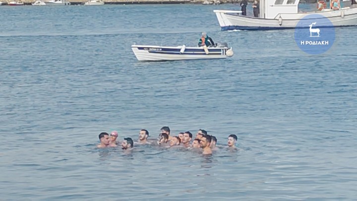 Ο 19χρονος ναύτης Σωτήρης Θύμιο ήταν εκείνος που έπιασε τον Τίμιο Σταυρό κατά τον Αγιασμό των Υδάτων στο εμπορικό λιμάνι της Ρόδου, στην ενορία του Αγίου Παντελεήμονα.