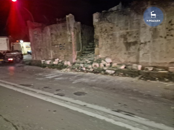 Ρόδος: Έπεσε τοιχίο στην αρχή της οδού Παπαλουκά - Κλείνει μεγάλο τμήμα του δρόμου μέχρι να γίνει έλεγχος