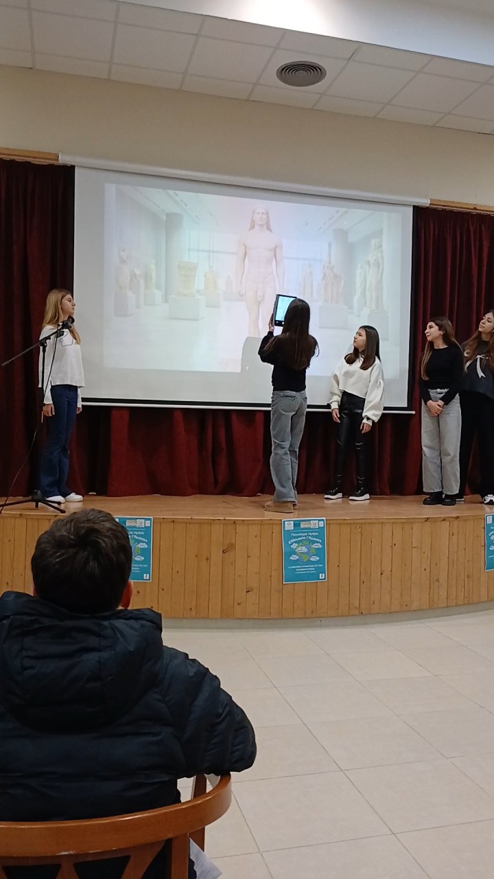 Ειδικότερα, οι μαθήτριες Παραπονιάρη Νικολέττα, Χρονοπούλου Νεφέλη – Ευφροσύνη (Α΄Γυμνασίου), Σαραντοπούλου Ελένη, Σιφουνιού Σοφία Μαρία και Τσιάγκρα Μαρία (Β΄ Γυμνασίου) με την καθοδήγηση δύο καθηγητριών τους, της κυρίας Παπαφώτη Μαρίας και της κυρίας Κωστοπούλου Μαρίας, μετέβησαν στη Ρόδο προκειμένου να συμμετάσχουν στην προαναφερθείσα εκδήλωση για τον Παγκόσμιο Εορτασμό της Ελληνικής Γλώσσας. Οι μαθήτριες έδωσαν «φωνή» στη γλώσσα μέσα από τη δραματοποίηση ενός αφηγηματικού κειμένου που οι ίδιες δημιούργησαν και το οποίο συνδυάστηκε με ψηφιακή οπτικοποίηση μέσω της εφαρμογής Pixverse. Κι έτσι, με αφετηρία το παρόν και με έναν ευφάνταστο και δημιουργικό τρόπο μας ταξίδεψαν στο παρελθόν και το μέλλον της ελληνικής γλώσσας, αναδεικνύοντας τη διαχρονικότητά της, τη δύναμη και την εξέλιξή της στον χρόνο.