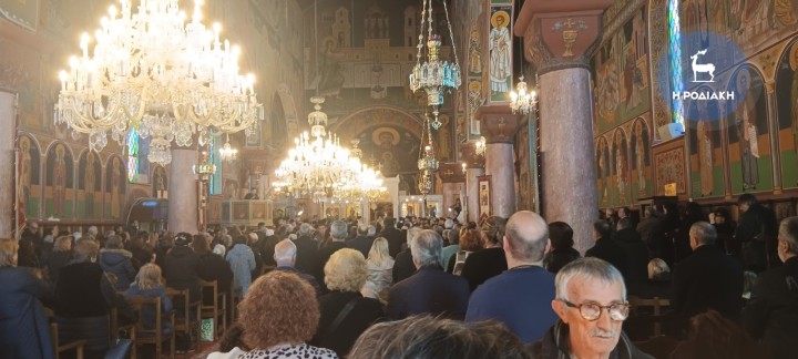 Τελείται αυτή την ώρα στον ιερό ναό Ευαγγελισμού της Θεοτόκου η νεκρώσιμη ακολουθία για τον μακαριστό μητροπολίτη πρώην Γάνου και Χώρας κυρό Αμφιλόχιο που εκοιμήθη, το Σάββατο 14 Φεβρουαρίου στο Γενικό Νοσοκομείο Ρόδου.