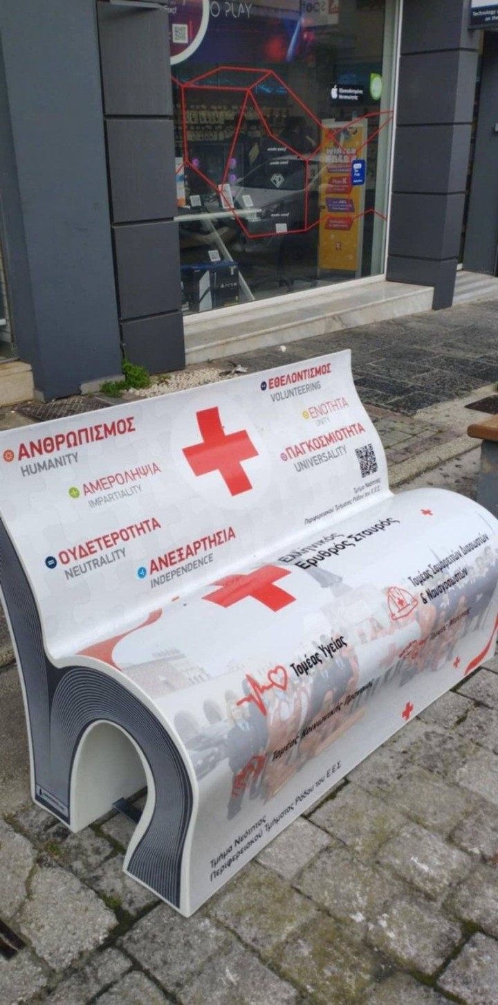 Δύο ξεχωριστά παγκάκια τοποθετήθηκαν τις τελευταίες ημέρες στο κέντρο της πόλης, τα οποία φέρουν τα μηνύματα του Ελληνικού Ερυθρού Σταυρού, για… να μην τα ξεχνάμε.