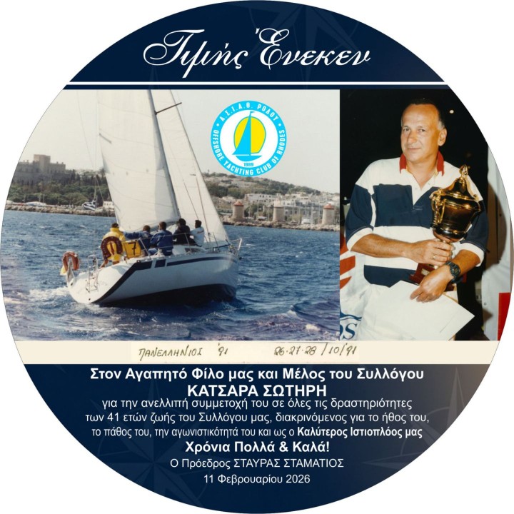 Τα 80χρονα γενέθλια του γιόρτασε πριν μερικές ημέρες ο Σωτήρης Κατσαράς, ο καλύτερος ιστιοπλόος της Ρόδου, μέλος του Αθλητικού Συλλόγου Ιστιοπλόων Ανοικτής Θάλασσας Ρόδου (ΑΣΙΑΘΡ). Όλα έγιναν με πρωτοβουλία νυν και παλιών μελών του πληρώματος του, που σκέφτηκαν να του κάνουν γενέθλια-έκπληξη στα γραφεία του ΑΣΙΑΘ Ρόδου! Την τούρτα, την ετοίμασε η διοίκηση του ΑΣΙΑΘ και για το κέφι, φρόντισαν τα εγγόνια του, μικροί και μεγάλοι ιστιοπλόοι μέλη και φίλοι του Συλλόγου, όπως και μέλη της διοίκησης. Ο Σωτήρης Κατσαράς είναι σήμερα κυβερνήτης του MARIA ELECTRA και πριν, των σκαφών VICKINGS STAR, ΚΑΠΕΤΑΝ ΜΑΝΩΛΗΣ και ESTELLA.