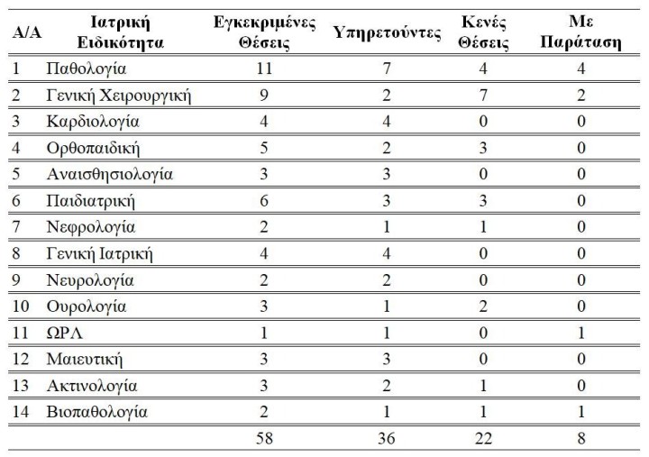 «Η Διοίκηση του Γενικού Νοσοκομείου “Ανδρέας Παπανδρέου” ενημερώνει τους ενδιαφερόμενους ιατρούς ότι κατωτέρω παρατίθεται η τρέχουσα εικόνα των οργανικών θέσεων ειδικευομένων ιατρών, ανά ιατρική ειδικότητα.