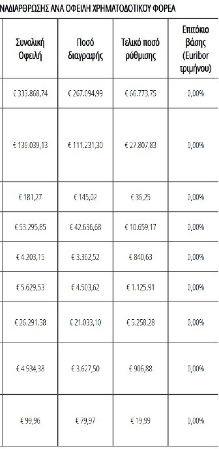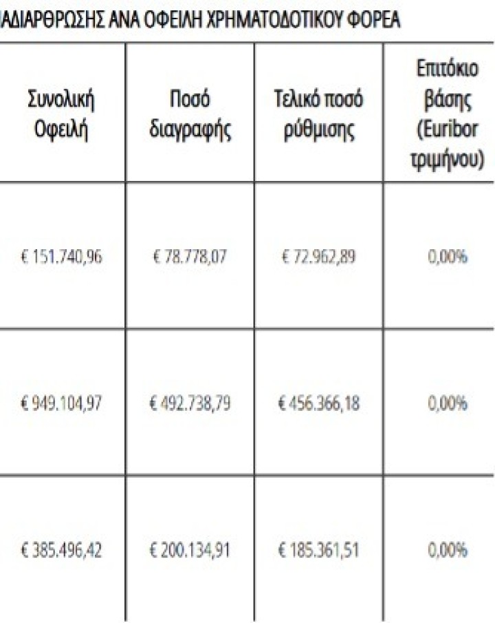 Νέες μεγάλες διαγραφές οφειλών με «κουρέματα» έως και 87%