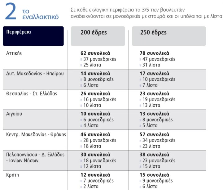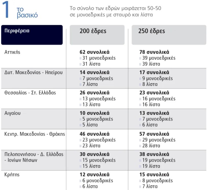 Οι έδρες ανά περιφέρεια με το προτεινόμενο σύστημα