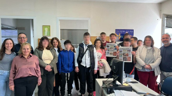 Τα γραφεία της εφημερίδας μας απέκτησαν έναν διαφορετικό παλμό τη Δευτέρα 20 Απριλίου 2026. Ανάμεσα σε οθόνες που αναβόσβηναν και τηλέφωνα που χτυπούσαν αδιάκοπα, ακούγονταν παιδικές φωνές γεμάτες ενθουσιασμό και απορίες. Οι μαθητές και οι μαθήτριες των τμημάτων Γ1 Γυμνασίου και Γ’ Λυκείου του ΕΝΕΕΓΥΛ Ρόδου πέρασαν το κατώφλι της εφημερίδας, στο πλαίσιο του προγράμματος σχολικών δραστηριοτήτων “On Air”, για να γνωρίσουν από κοντά τον κόσμο της δημοσιογραφίας.