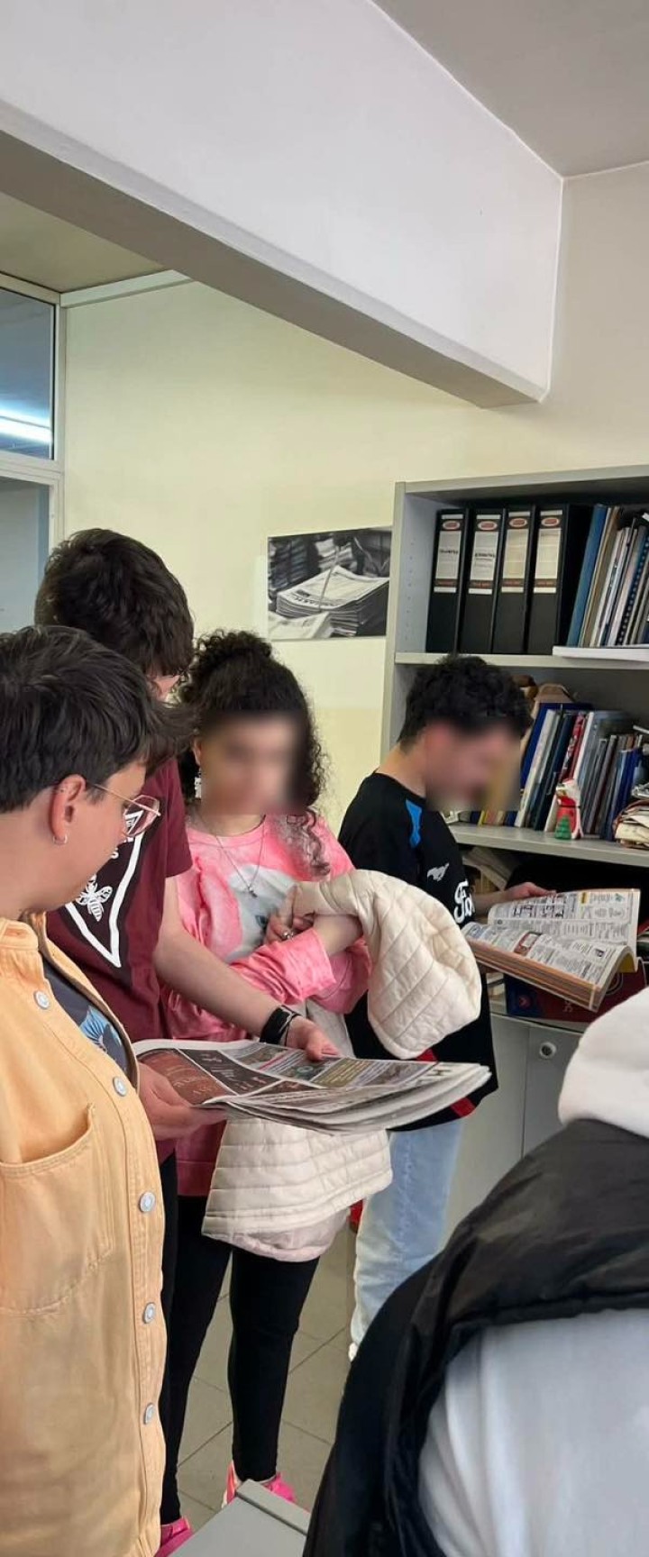 Η δημοσιογράφος Κυριακή Πετρίδου τούς υποδέχθηκε και τους ξενάγησε σε μια πραγματικότητα που συνήθως φτάνει στα χέρια μας μόνο μέσα από τυπωμένες σελίδες. Με λόγο άμεσο και παραστατικό, τους μίλησε για τη διαδρομή της είδησης — από τη στιγμή που γεννιέται ως πληροφορία μέχρι τη στιγμή που δημοσιεύεται.
