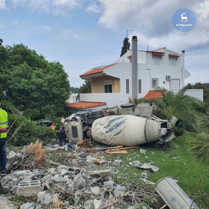 Ρόδος: Μπετονιέρα φορτωμένη με σκυρόδεμα «εισέβαλε» σε αυλή στους Τρεις