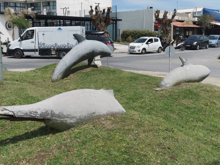 «Με την κατασκευή του κυκλικού κόμβου στην περιοχή “Ζέφυρος”, δίπλα από τις κατοικίες στρατιωτικών, τοποθετήθηκε μια ωραία εικαστική σύνθεση, κάποια δελφίνια να “παίζουν” στα κύματα. Εδώ και 3 χρόνια περίπου, κάποιοι βανδάλισαν το έκθεμα αυτό και ακρωτηρίασαν τα δελφίνια, καταστρέφοντας το αξιοθέατο γλυπτό. Αυτό δεν τους τιμά, αλλά δεν τιμά και εμάς που 3 χρόνια τώρα δεν καταφέραμε να αποκαταστήσουμε τις ζημιές.