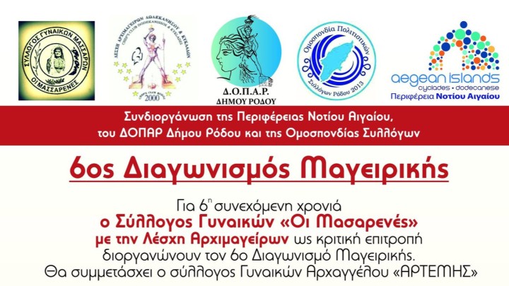 Πολιτισμός - Εκδηλώσεις 22.03.2024 19:00 5ος Διαγωνισμός Μαγειρικής από τον Σύλλογο Γυναικών «Οι Μασσαρενές»