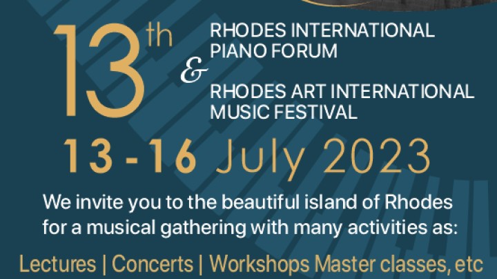 Από τις 13 έως τις 16 Ιουλίου 2023 το 13ο Διεθνές Φόρουμ Πιάνου Ρόδου