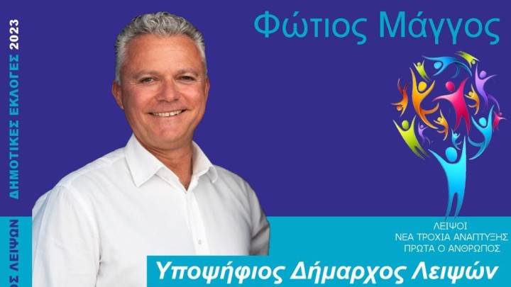 Λειψοί 04.09.2023 11:25 Μονάδικος υποψήφιος στον δήμο Λειψών ο Φώτης Μάγγος με τον συνδυασμό "Λειψοί νέα τροχιά ανάπτυξης"