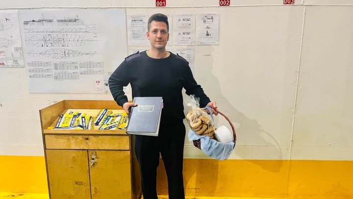 Επιχειρηματίες της Η.Ν. Κάσου αποχαιρέτησαν το «ΠΡΕΒΕΛΗΣ» -Παρέδωσαν στο πλήρωμα καλάθι με τοπικά προϊόντα