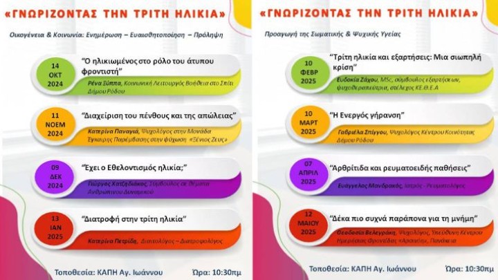 Επικαιρότητα 11.05.2023 20:05 Ομιλία για τα προβλήματα που απασχολούν την τρίτη ηλικία στα ΚΑΠΗ Ρόδου