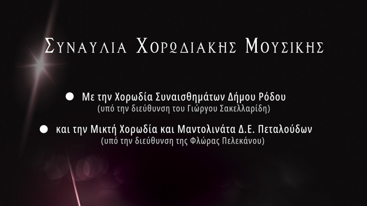 Συναυλία με τίτλο "Χορωδιακή Ελλάδα" αύριο από τη Χορωδία Δημοτικού Ωδείου Ρόδου