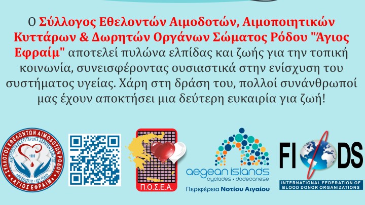 Επικαιρότητα 03.10.2025 09:00 Ο Σύλλογος Εθελοντών Αιμοδοτών Ρόδου «Άγιος Εφραίμ» στο πρώτο Rhodes Youth Fair