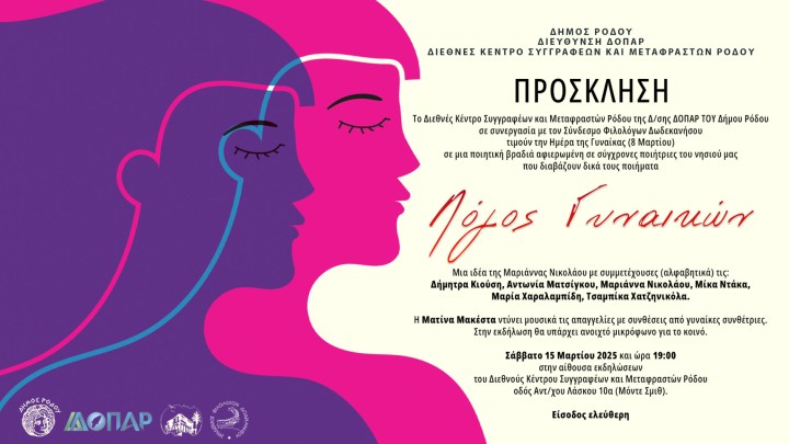 «Ημέρα της Γυναίκας» από το Διεθνές Κέντρο Συγγραφέων και Μεταφραστών Ρόδου της Διεύθυνσης ΔΟΠΑΡ του Δήμου Ρόδου