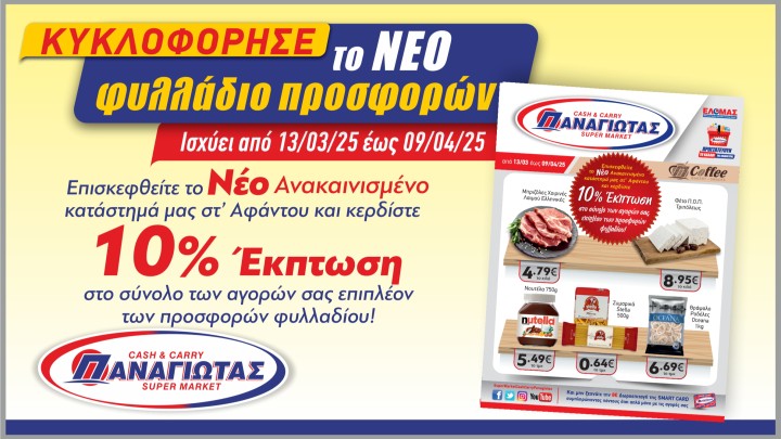 Market 14.03.2025 11:30 "Άνοιξη" με ανακαίνιση στο κατάστημά μας στ’ Αφάντου και 10% έκπτωση στο σύνολο των αγορών σας!
