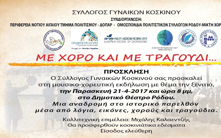 Πολιτισμός - Εκδηλώσεις 21.06.2019 18:50 Μουσικοχορευτική παράσταση «Χορός, έκφραση του ανείπωτου» στη Ρόδο