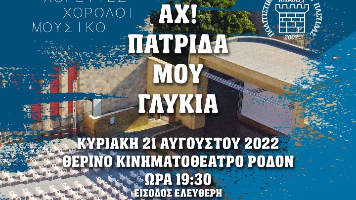 Πολιτισμός - Εκδηλώσεις 17.08.2022 12:40 «Αχ Πατρίδα μου γλυκιά»: Μεγάλη μουσικοχορευτική παράσταση στο κινηματοθέατρο Ρόδον