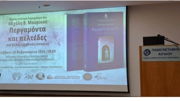 Πολιτισμός - Εκδηλώσεις 18.02.2026 12:00 Την Παρασκευή 20 Φεβρουαρίου η παρουσίαση του βιβλίου «Ροδίων Μυθιστορία» του Γιάννη Παρασκευά