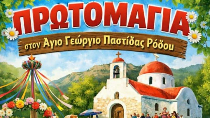 Πολιτισμός - Εκδηλώσεις 25.04.2026 16:00 Πρωτομαγιά στην Παστίδα: Γιορτή λουλουδιών, παιχνιδιού και παράδοσης από τον Πολιτιστικό Σύλλογο Παστίδας «ΚΑΜΑΡΙ»