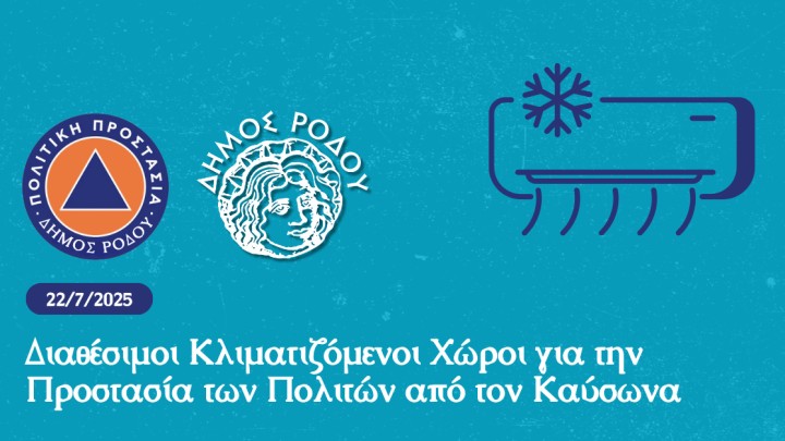 Επικαιρότητα 22.07.2025 12:45 Διάθεση κλιματιζόμενων αιθουσών από τον δήμο Ρόδου για την προστασία των πολιτών από τις υψηλές θερμοκρασίες