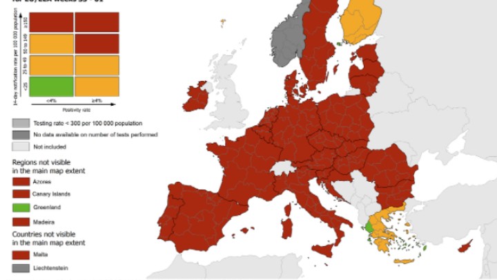 Ελλάδα - Επικαιρότητα 28.01.2021 18:25 Χάρτες ECDC: Τα Δωδεκάνησα παραμένουν στις τέσσερις πράσινες περιοχές της Ευρώπης