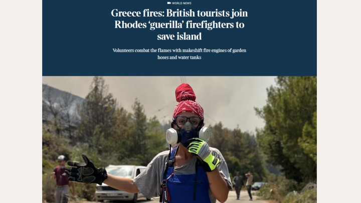 Επικαιρότητα 30.07.2023 12:45 Times: Οι «εναλλακτικοί» πυροσβέστες που έδωσαν τη μάχη με τις πυρκαγιές στη Ρόδο