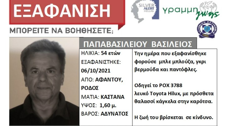Αστυνομικό - Δικαστικό 03.07.2025 14:00 Σε εξέλιξη έρευνες με Silver Alert για την εξαφάνιση Βρετανού τουρίστα στην Κάρπαθο